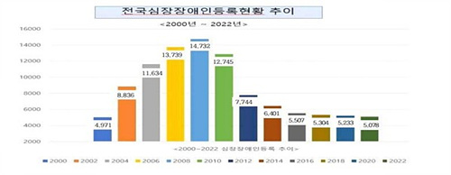 년도별 전국심장장애인 등록현황 변동추이. ⓒ한국신장장애인협회